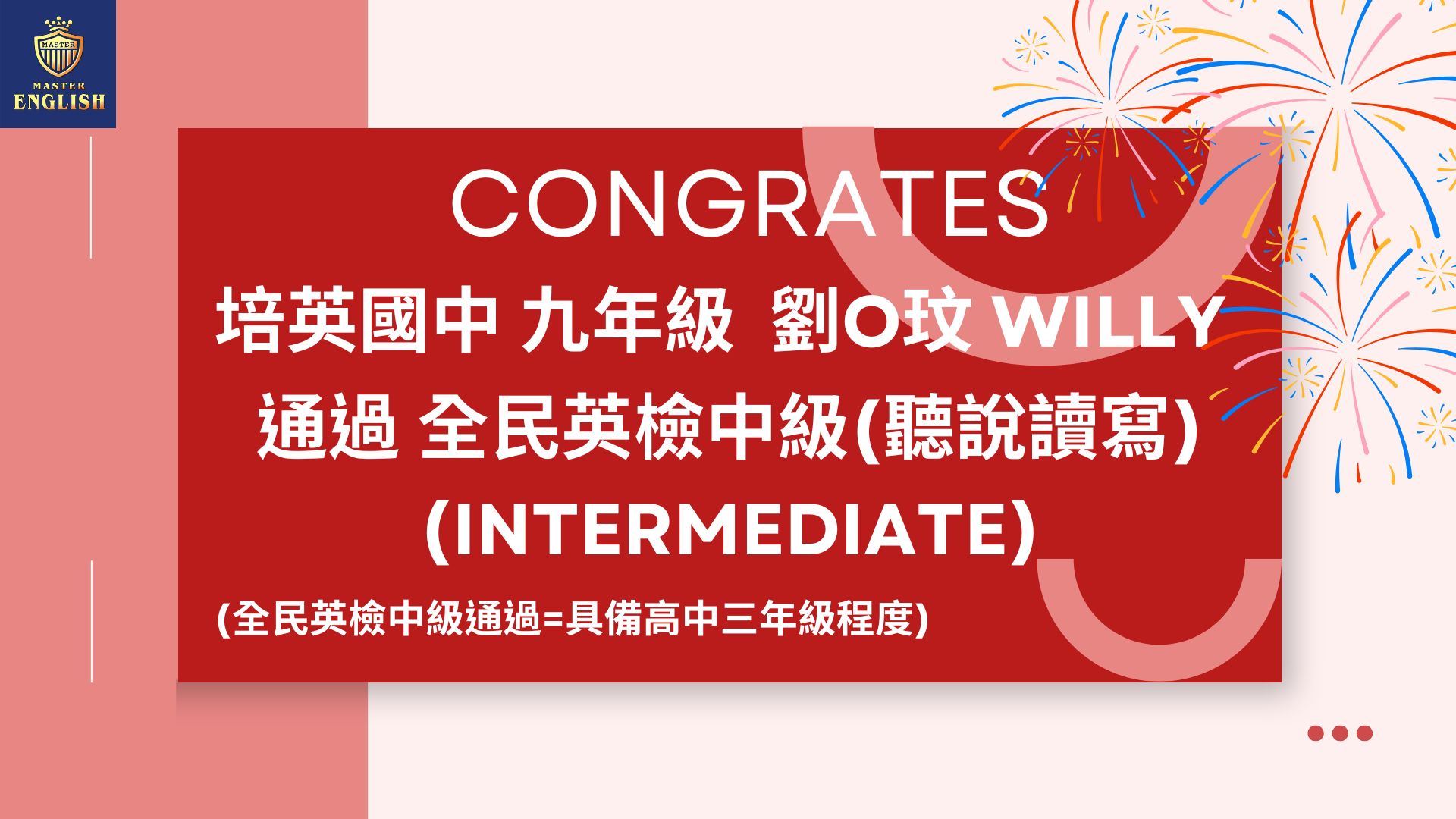 恭喜通過全民英檢中級(聽說讀寫)